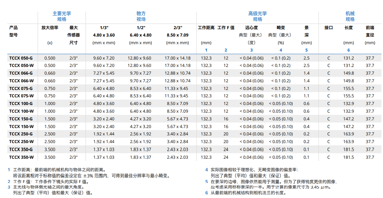 TCCX 系列是一組專為平面測量和缺陷檢測而設(shè)計的遠(yuǎn)心鏡頭,可提 供與 TCLWD 系列相同的放大倍率和工作距離,同時增加了集成式同 軸光源。