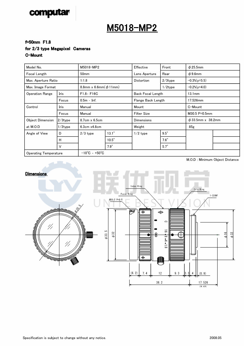 ●具有焦點(diǎn)和光圈鎖定調(diào)節(jié)鏍釘;